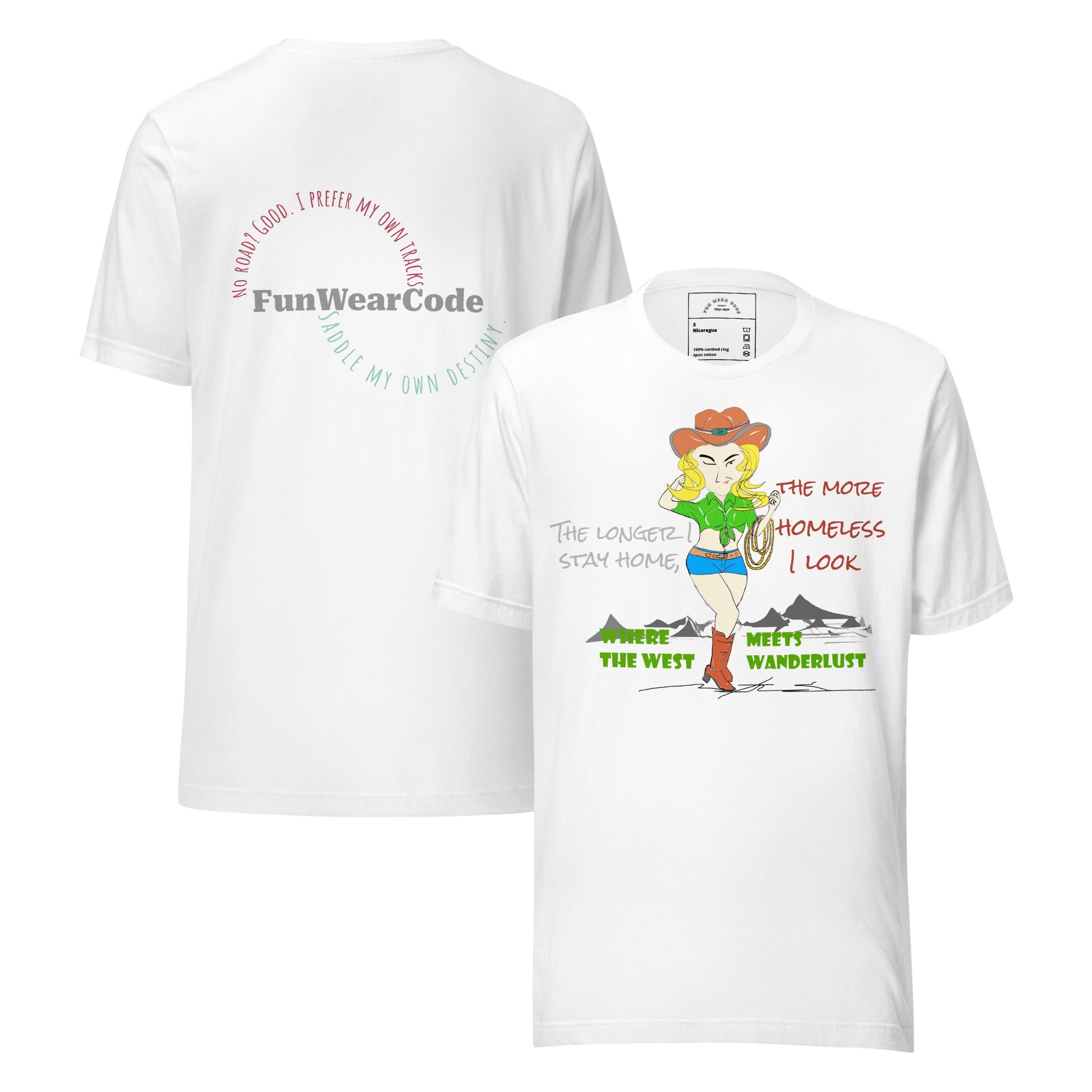 In conclusion, our cowgirl tee is more than just a piece of clothing; it’s a celebration of the wild west spirit, a nod to the brave souls who dared to dream big, and a reminder that you can be tough while still having a little fun. So, saddle up, grab your tee, and let’s ride into the sunset together! (Just don’t forget your sunscreen—those UV rays can be as fierce as a cowgirl 😀)